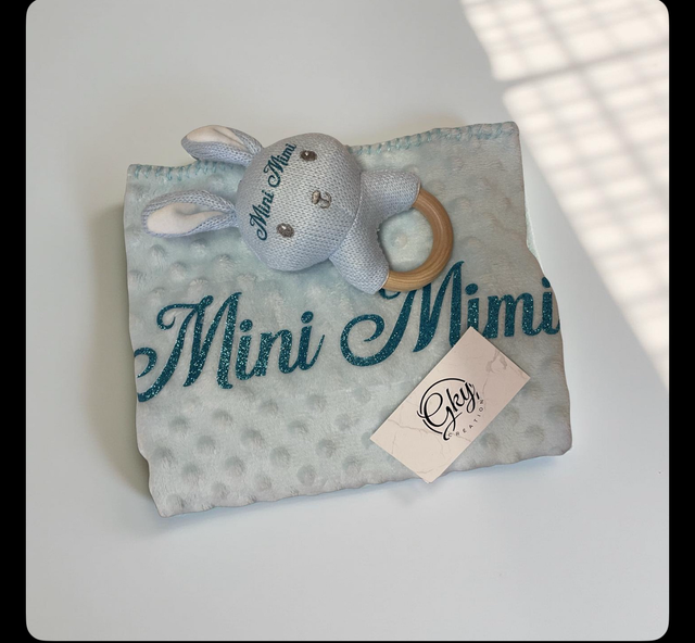 Couverture douce pour enfants – avec hochet assorti et personnalisation (broderie ou flocage)